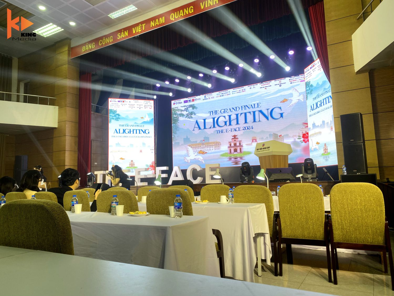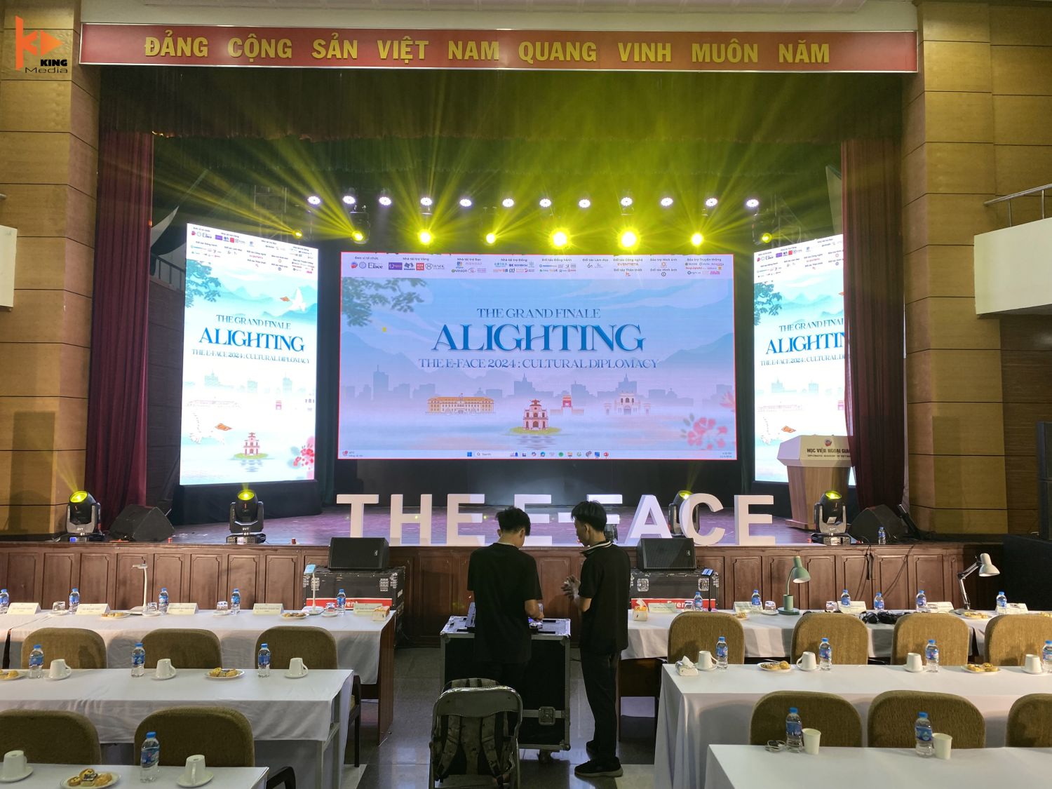Sự kiện The E-Face 2024, với chủ đề “Alighting,” đã khép lại vào tối ngày 03/11/2024, để lại dấu ấn sâu đậm trong lòng khán giả nhờ những màn trình diễn đầy cảm xúc và không gian nghe nhìn mãn nhãn. Đằng sau thành công của đêm chung kết tại Học viện Ngoại giao là sự đồng hành tận tâm của King Media Event – đơn vị chuyên cung cấp dịch vụ âm thanh và ánh sáng hàng đầu Việt Nam. Với sự chuyên nghiệp, sáng tạo và công nghệ tiên tiến, King Media Event đã góp phần biến The E-Face 2024 thành một hành trình rực rỡ, lan tỏa sứ mệnh “Ngoại giao văn hóa” đến cộng đồng sinh viên. Bài viết này sẽ khám phá vai trò của King Media Event trong sự kiện, từ quá trình chuẩn bị, triển khai, đến những đóng góp quan trọng giúp đêm chung kết trở nên hoàn hảo.