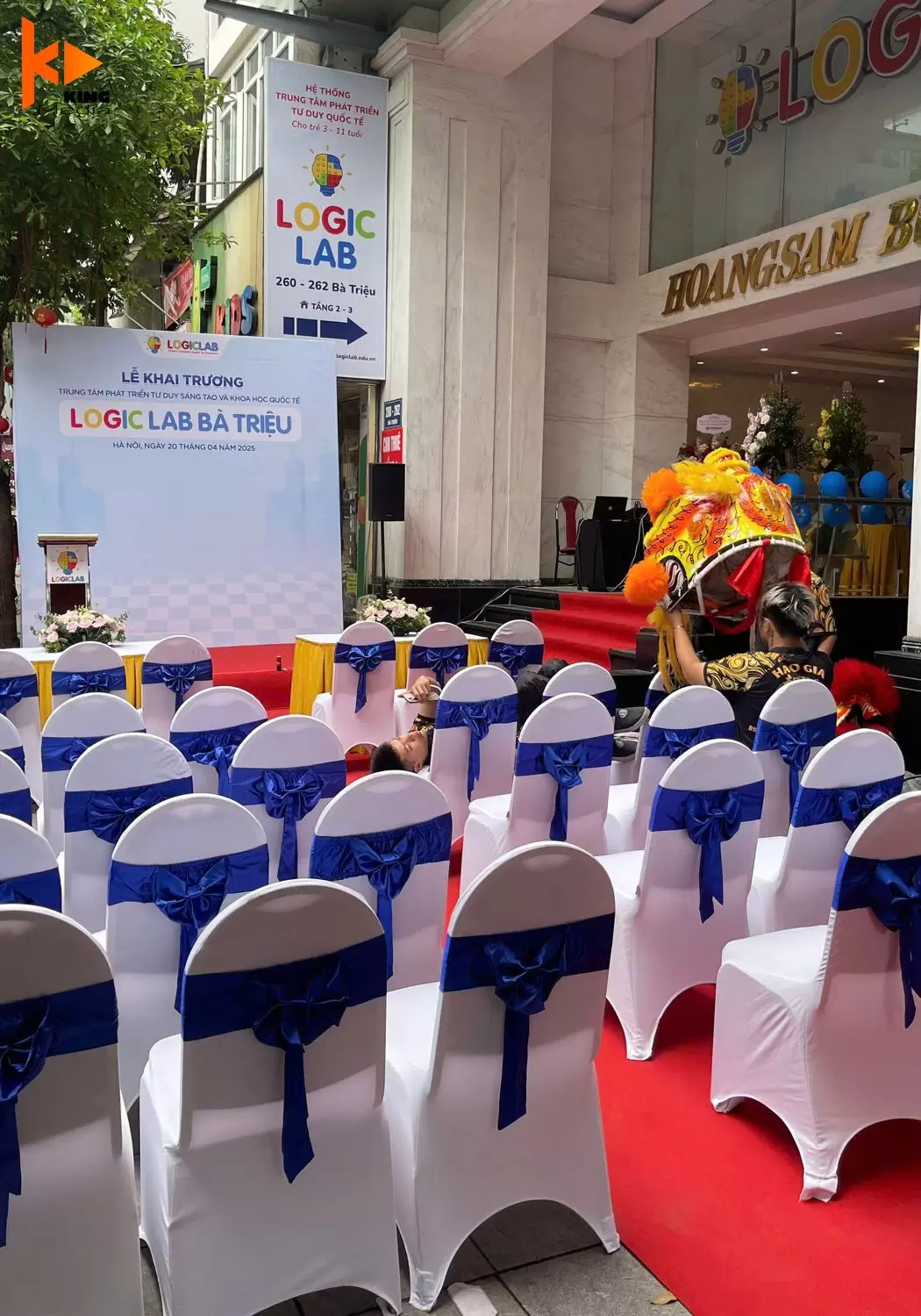 Vào một ngày rực rỡ của tháng Tư năm 2025, KING MEDIA tự hào được đồng hành cùng sự kiện đặc biệt – lễ khai trương Logic Lab Bà Triệu, trung tâm tiên phong trong lĩnh vực phát triển tư duy sáng tạo và khoa học quốc tế tại Hà Nội. Với sứ mệnh mang đến những trải nghiệm giáo dục hiện đại, Logic Lab Bà Triệu không chỉ là nơi ươm mầm tài năng trẻ mà còn là điểm đến lý tưởng cho những ai đam mê khám phá khoa học và sáng tạo. KING MEDIA đã góp phần tạo nên một buổi lễ khai trương ấn tượng, hoành tráng với các hạng mục như backdrop, sân khấu, âm thanh, pháo giấy, pháo điện đầy sắc màu.